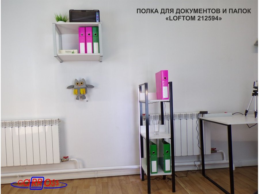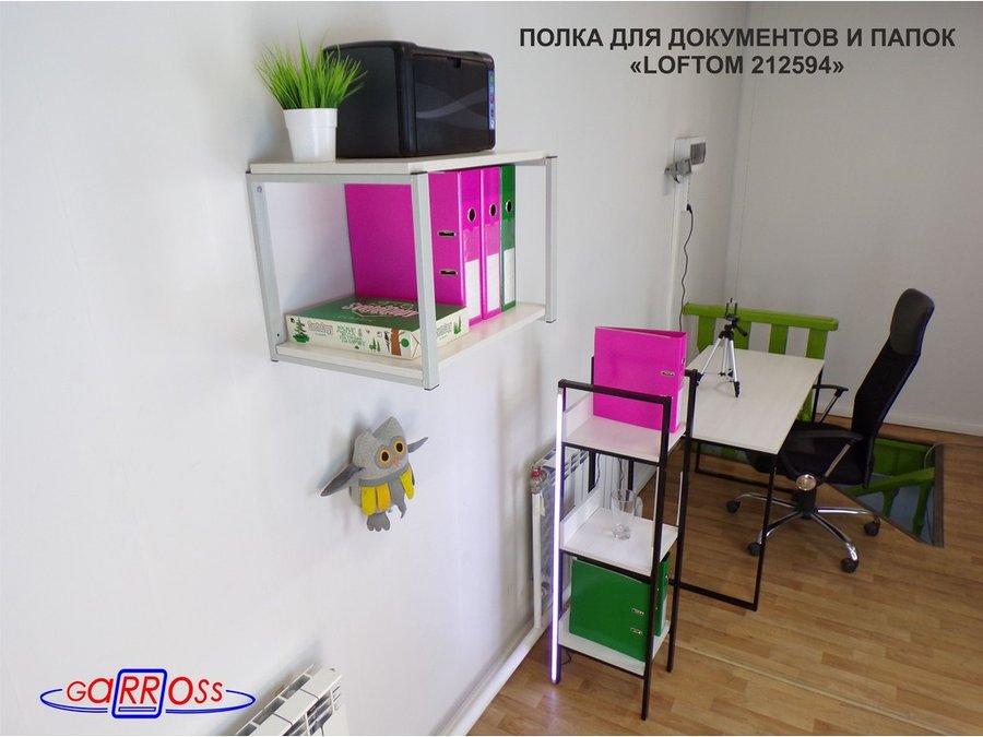 Полка для папок и документов, высота 38см серый "LOFTOM 212594"две полки 35х54см, сосна выбеленная