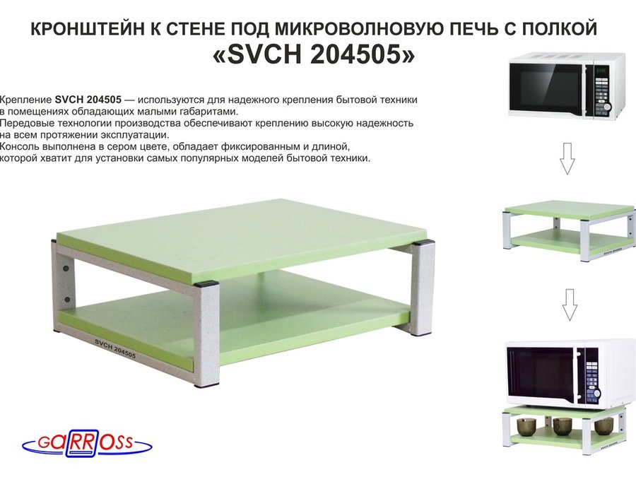 Кронштейн для микроволновки, 17см серый "SVCH 204505" под микроволновую печь, полка 30х40, салатовый