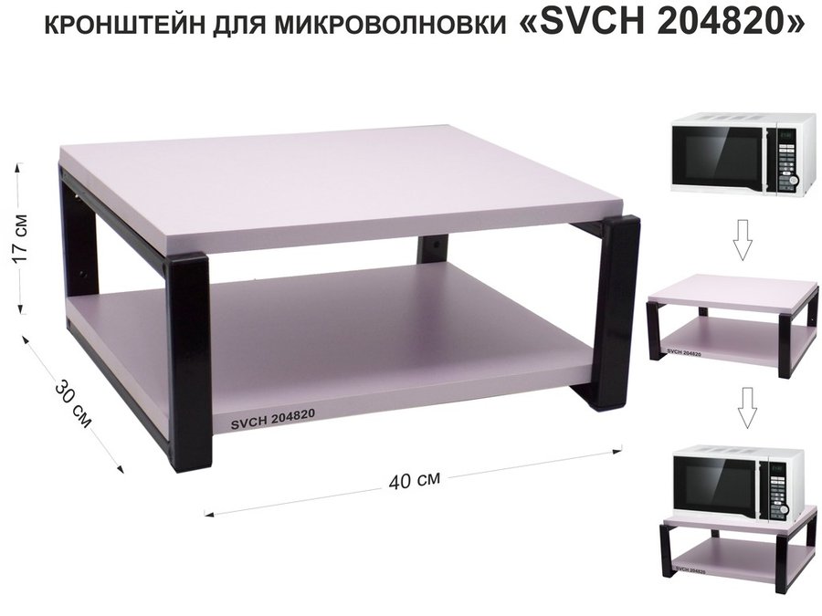 Кронштейн для микроволновки, 17см чёрный "SVCH 204820" под микроволновую печь,полка, 30х40см,лаванда