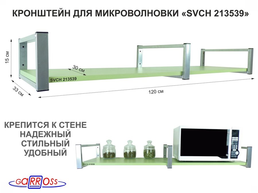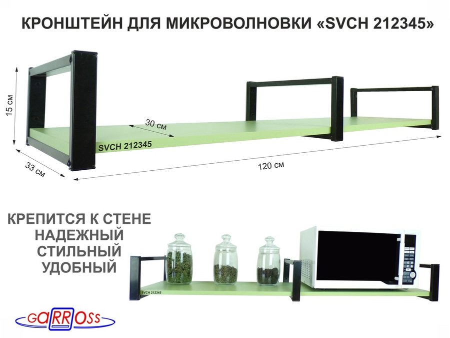Кронштейн для микроволновки, 15см черный, 1 полка 30х120см "SVCH 212345" под микроволновую,салатовый