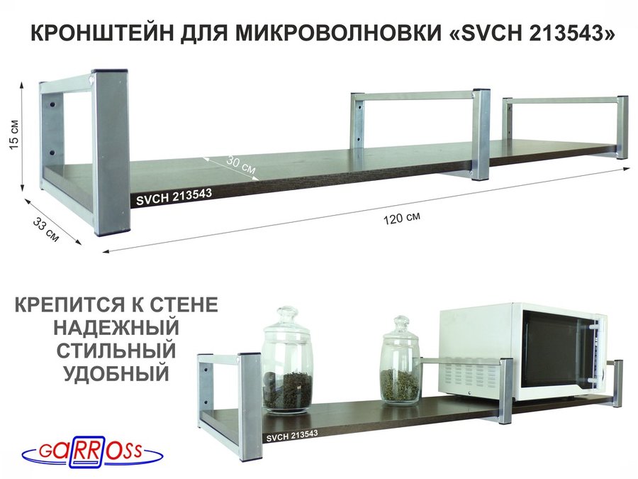 Полки для микроволновок "SVCH" кронштейны для СВЧ печей, высота 15см, 120х30см, 1 уровень снизу
