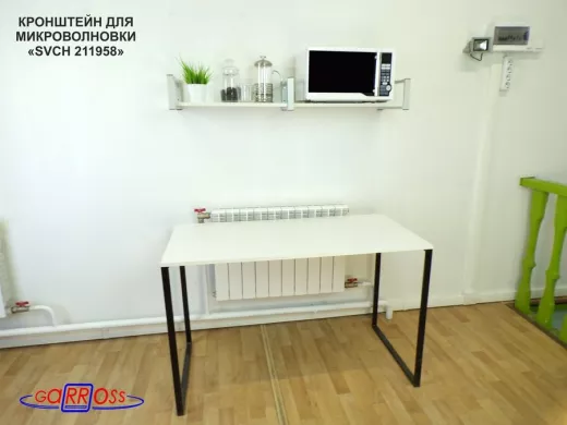 Кронштейн для микроволновки, 15см серый, 1 полка 30х120см "SVCH 211958" под микроволновую печь,сосна