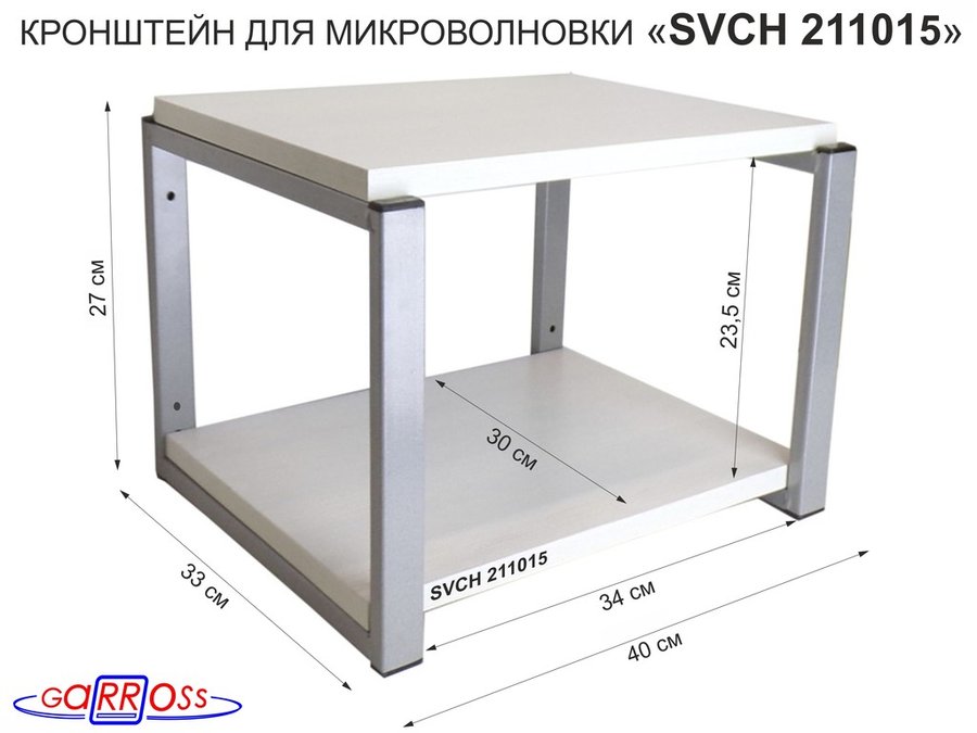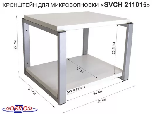 Кронштейн для микроволновки, 27см серый "SVCH 211015" под микроволновую печь, полка 30х40, сосна