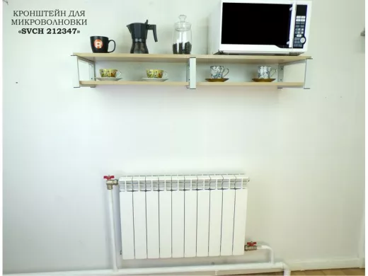 Кронштейн для микроволновки, 17см серый, 2 полки 30х120см "SVCH 212347" под микроволновую печь, дуб