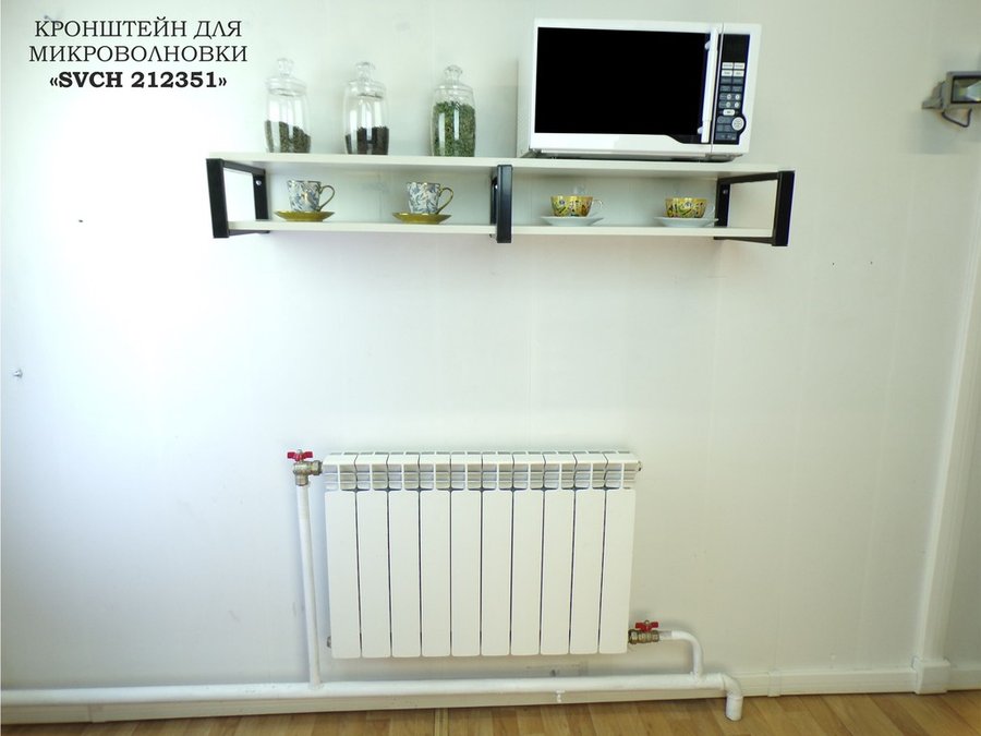 Кронштейн для микроволновки, 17см черный, 2 полки 30х120см "SVCH 212351" под микроволновую, сосна