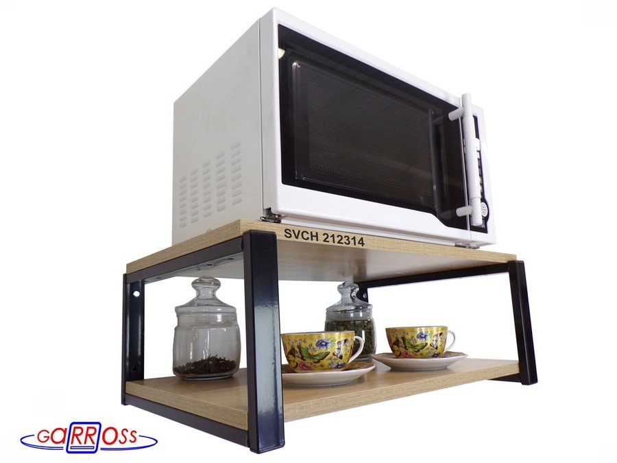 Кронштейн для микроволновки, 21см чёрный "SVCH 212314" две полки 35х54см, дуб сонома