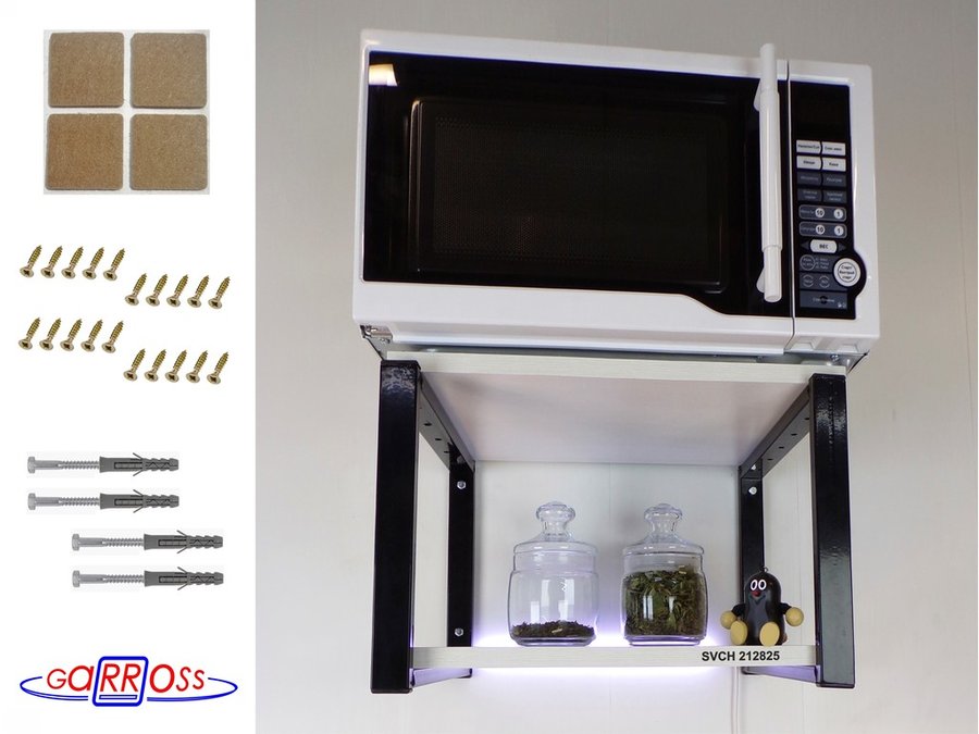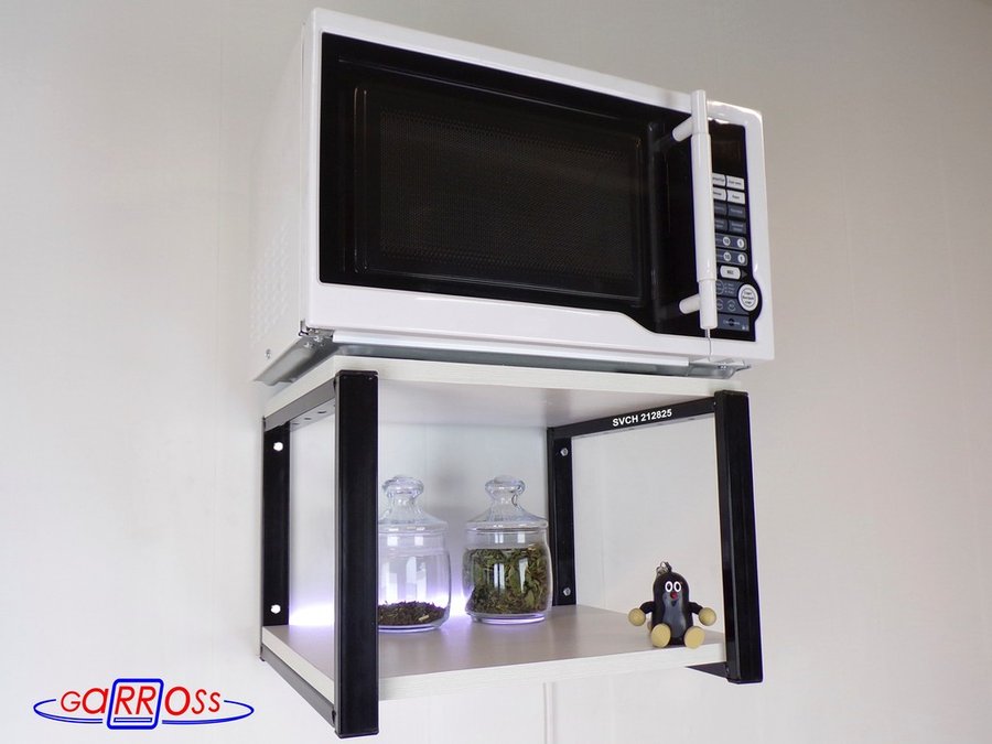Полка с подсветкой белого цвета для микроволновки, 27см чёрный "SVCH 212825" полки 30х40 см, сосна
