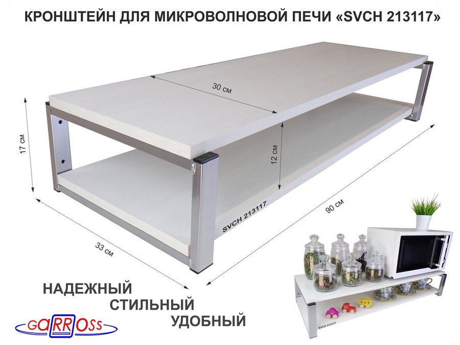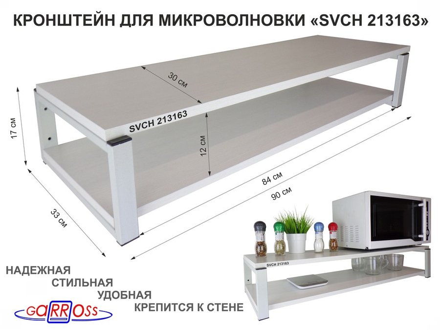 Полки для микроволновок "SVCH" кронштейны для СВЧ печей, высота 17см, 90х30см, 2 уровня