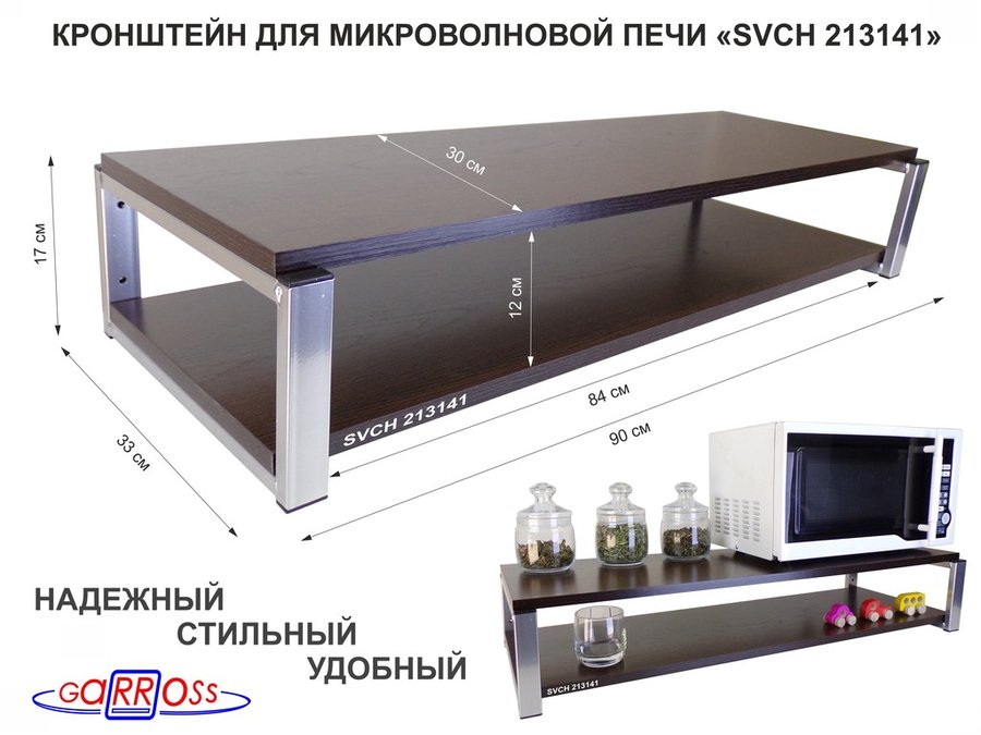 В корзину Купить в 1 клик Кронштейн для микроволновки, 17см серебристый "SVCH 213141" под микроволновку,две полки 90х30, венге
