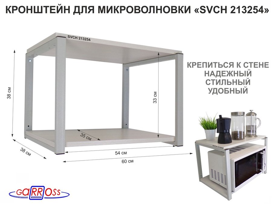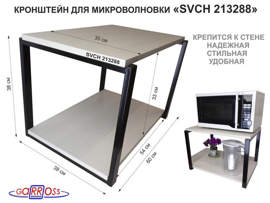Полки для микроволновок "SVCH" кронштейны для СВЧ печей, высота 38см, 60х35см, 2 уровня