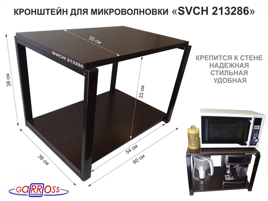 В корзину Купить в 1 клик Кронштейн для микроволновки, 38см черный "SVCH 213286" две полки 35х60см, венге