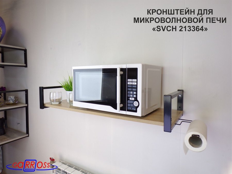 Кронштейн для микроволновой печи, 15см чёрный "SVCH 213364" полка 90х30, дуб, держатель полотенц.