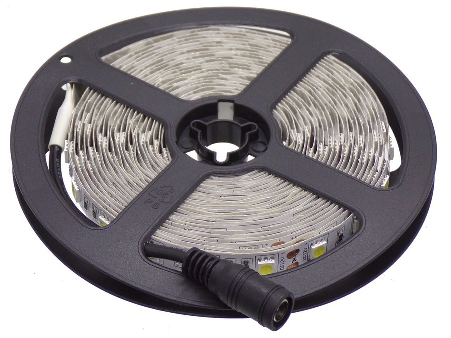 В корзину Купить в 1 клик Светодиодная лента негерм. белая 60 шт./м с гнездом, 14,4Вт/м, 12V (5метров = 2,5А) цена за 5м) 5050