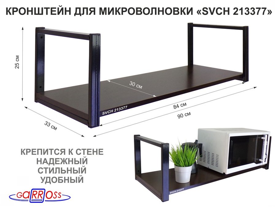 В корзину Купить в 1 клик Кронштейн для микроволновки, 25см черный, 1 полка 90х30см "SVCH 213377" для кухни, венге