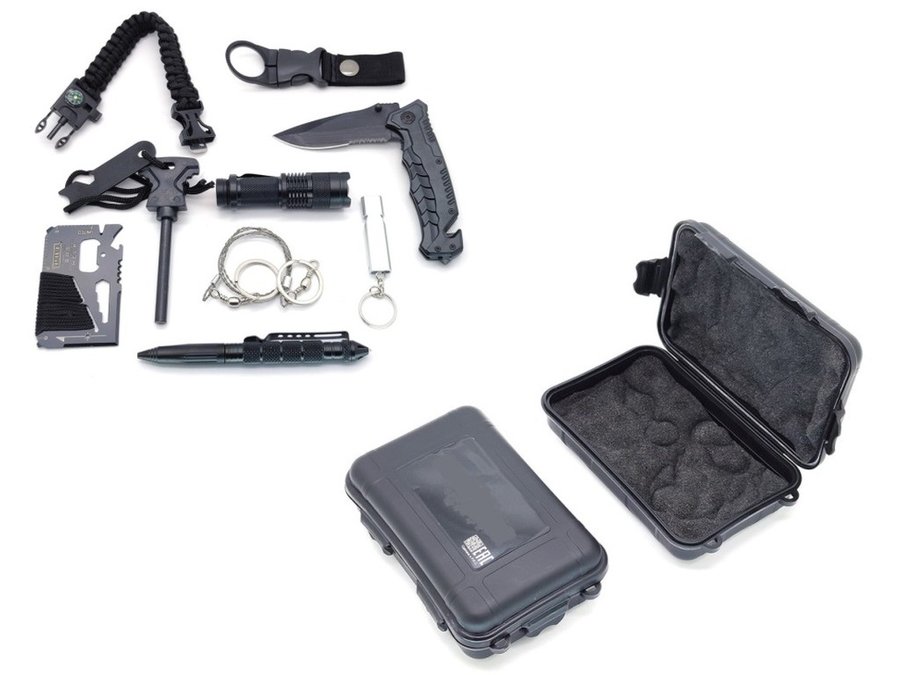 В корзину Купить в 1 клик Набор для выживания в лесу "ABI-110415" фонарь, нож, ручка, огниво, пила, свисток, компас, кейс