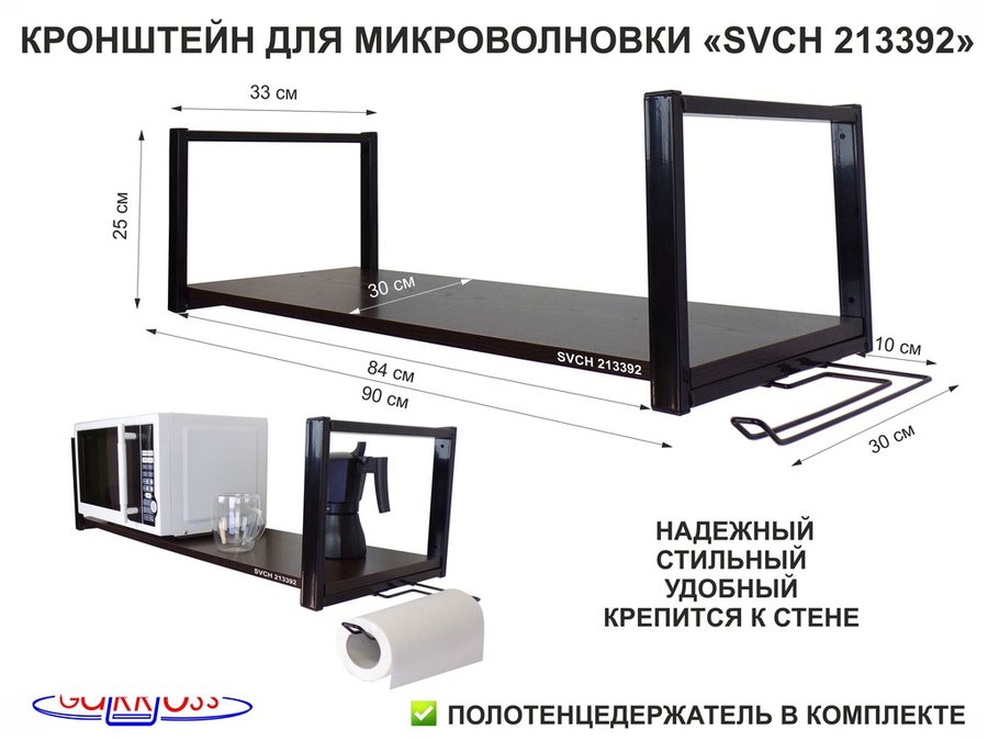 В корзину Купить в 1 клик Кронштейн для СВЧ, 25см черный, полка 90х30см, держатель полотенец правая сторона"SVCH 213392" венге