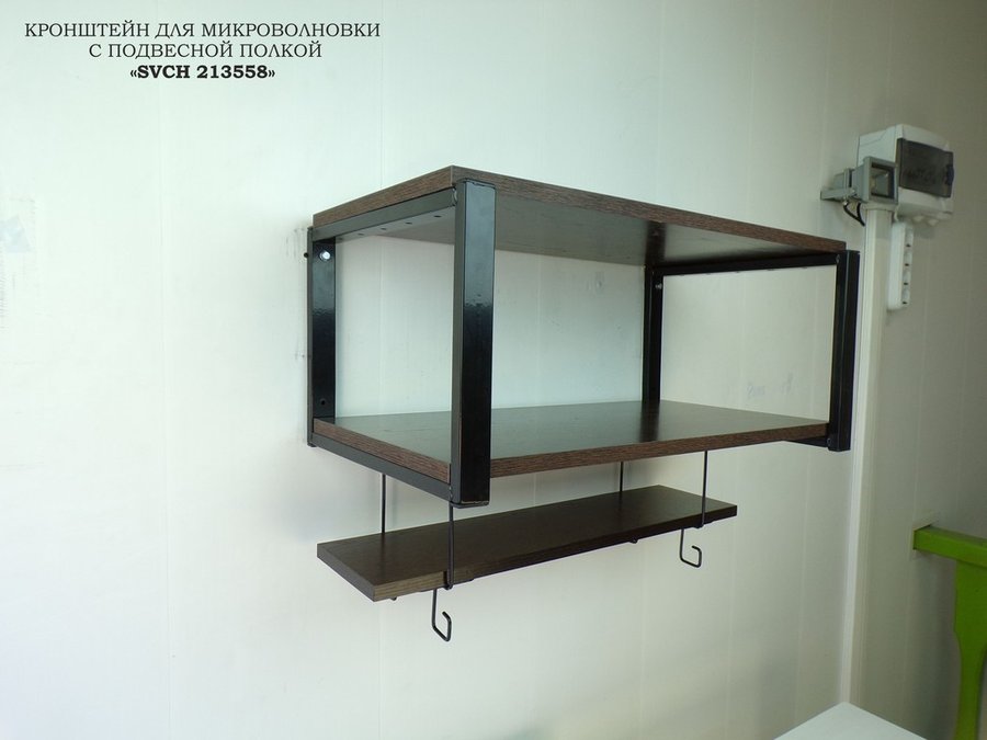 Кронштейн для микроволновки с подвесной полкой, высота 27см, черный "SVCH 213558" 60х30 см , венге