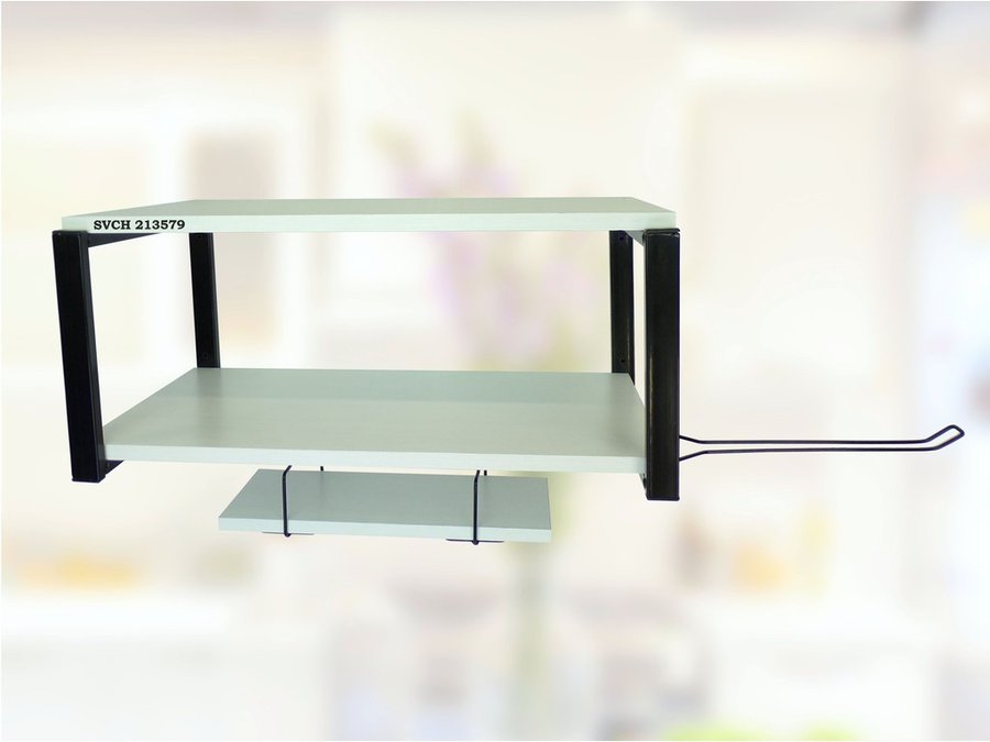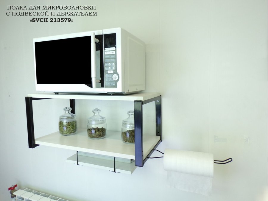 Полка для микроволновки 60х30см с подвеской 40х15см, 27см, черный "SVCH 213579",сосна, с держателем