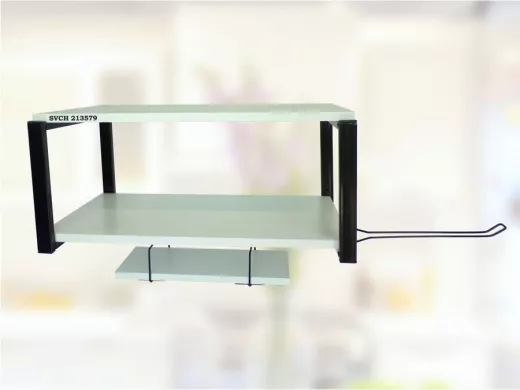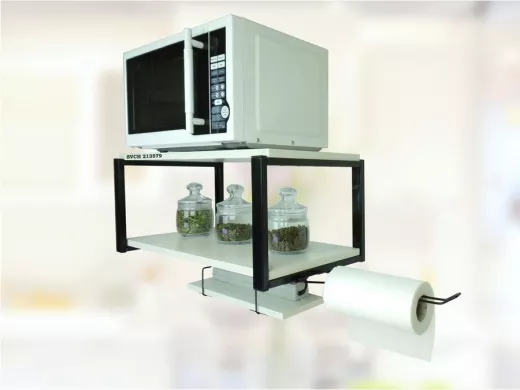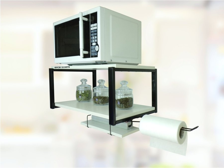 - На верхней полке можно разместить микроволновую печь или другую кухонную технику, на средней отлично "встанет" посуда, баночки под сыпучее и многое другое, а нижняя полка отлично подойдет для специй, таймера или маленьких сувениров