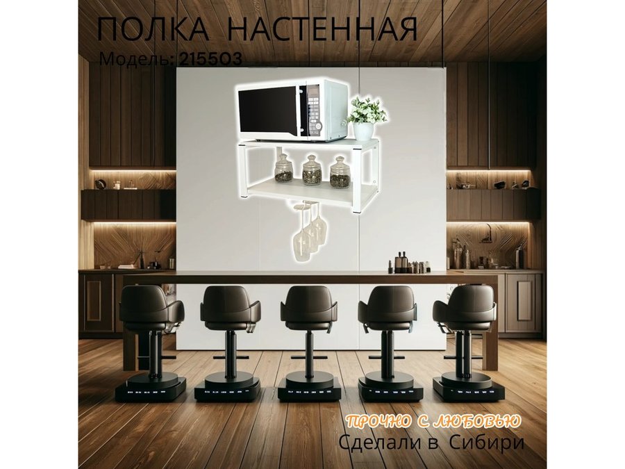 • Полка надежно крепится к стене при помощи анкеров или шурупов с дюбелями, на ней можно разместить микроволновую печь, кухонную технику, посуду, специи