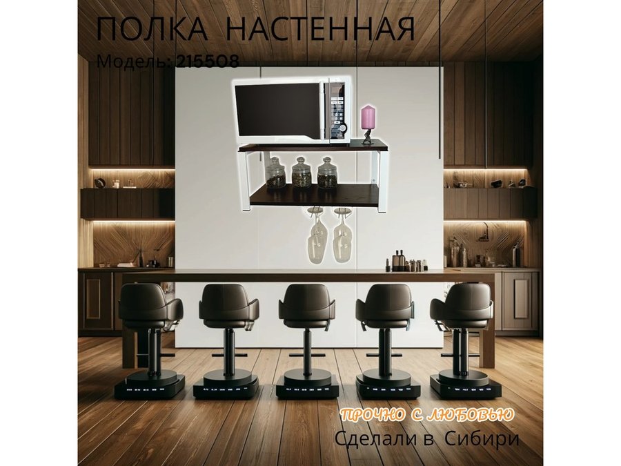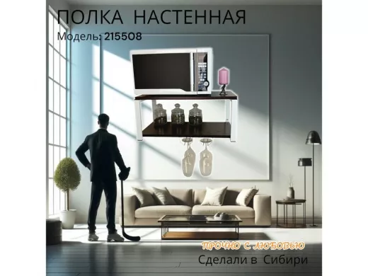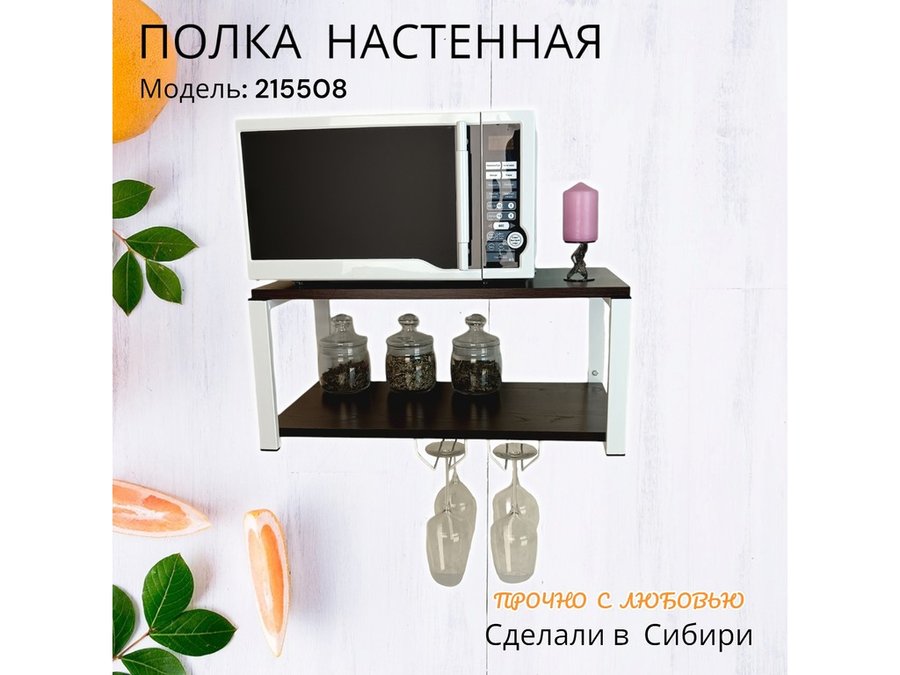 Полка c двумя бокалодержателем для микроволновки "SVCH 215508" 60х30см, белая, венге