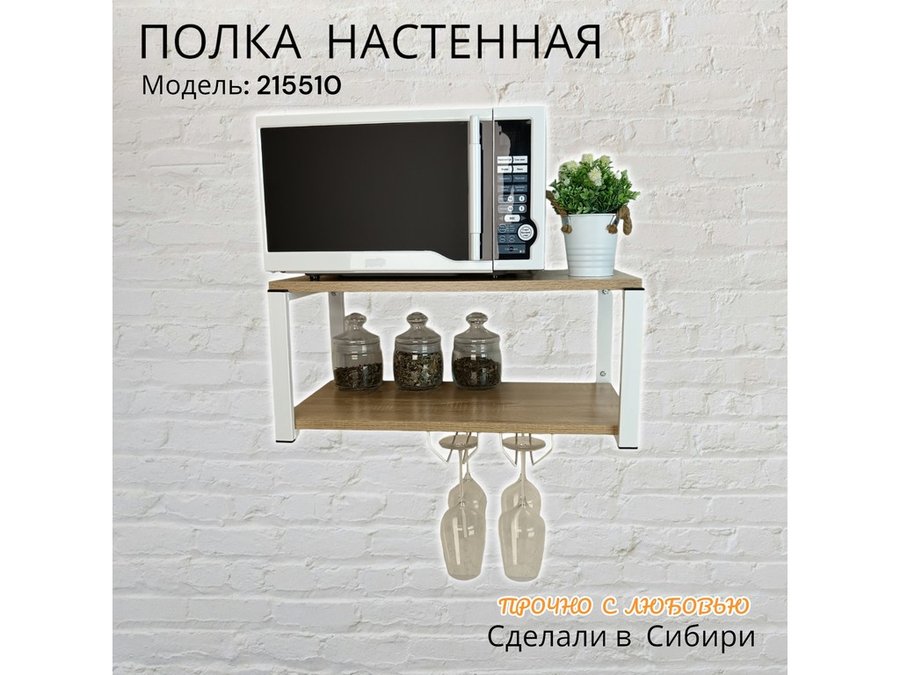 В корзину Купить в 1 клик Полка c двумя бокалодержателем для микроволновки "SVCH 215510" 60х30см, белая, дуб сонома
