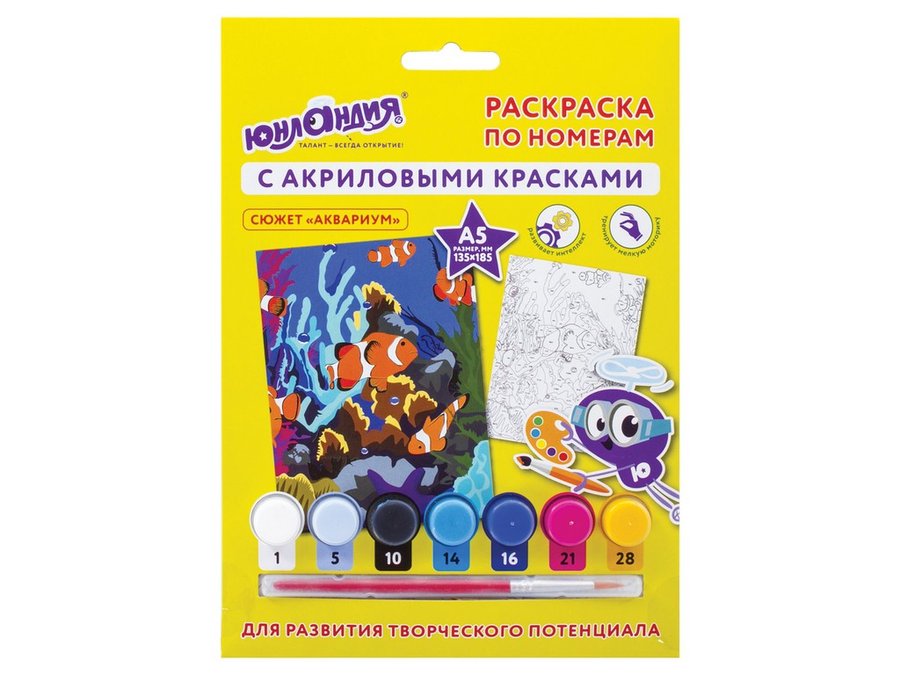 В корзину Купить в 1 клик Раскраска по номерам А5, "BR-79371" "АКВАРИУМ", С АКРИЛОВЫМИ КРАСКАМИ, на картоне, кисть