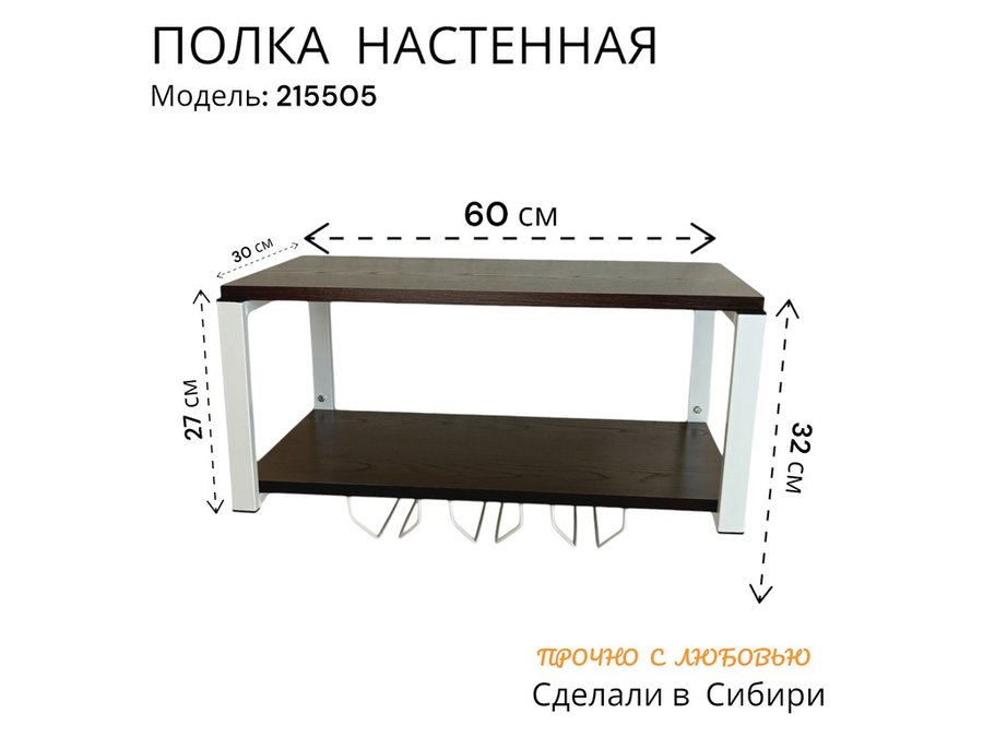 В корзину Купить в 1 клик Полка c тремя бокалодержателями для микроволновки "SVCH 215505" 60х30см, белая, венге