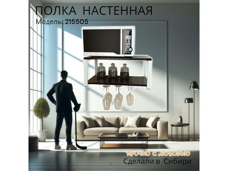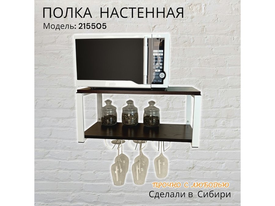 • Полка надежно крепится к стене при помощи анкеров или шурупов с дюбелями, на ней можно разместить микроволновую печь, кухонную технику, посуду, специи