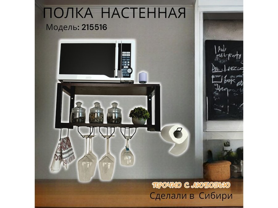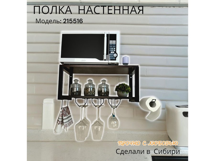 Полка c тремя бокалодержателем и полотенцед. для микроволновки "SVCH 215516" 60х30см, черная, венге