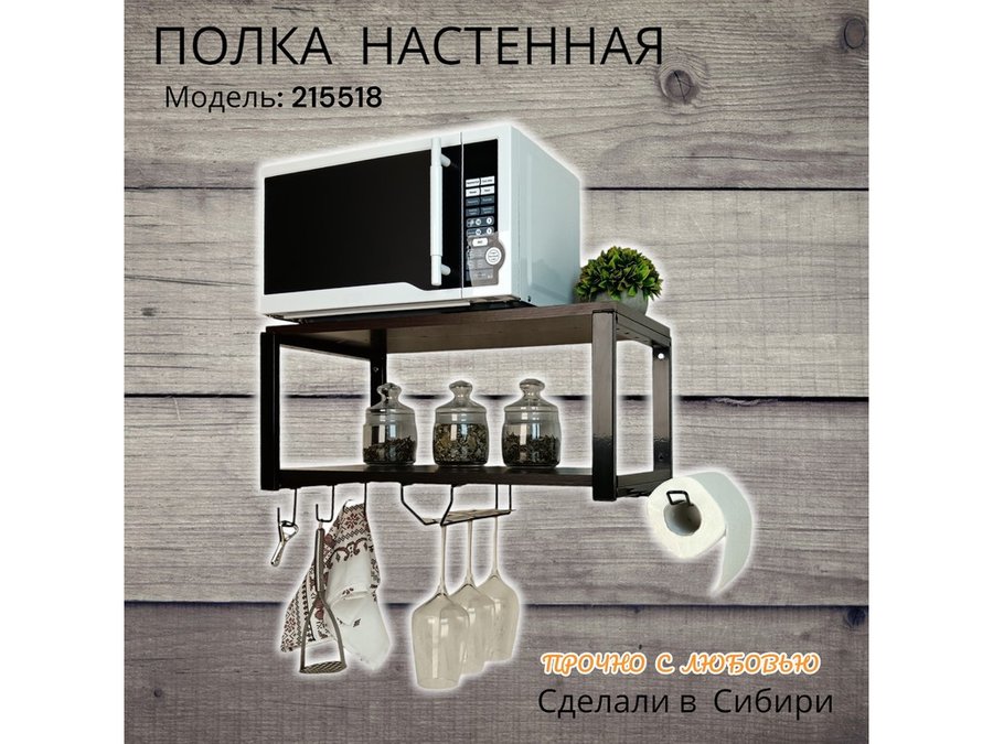Полка для микроволновки c бокалодержателем, полотенцед, крючками "SVCH 215518" 60х30см, черная,венге