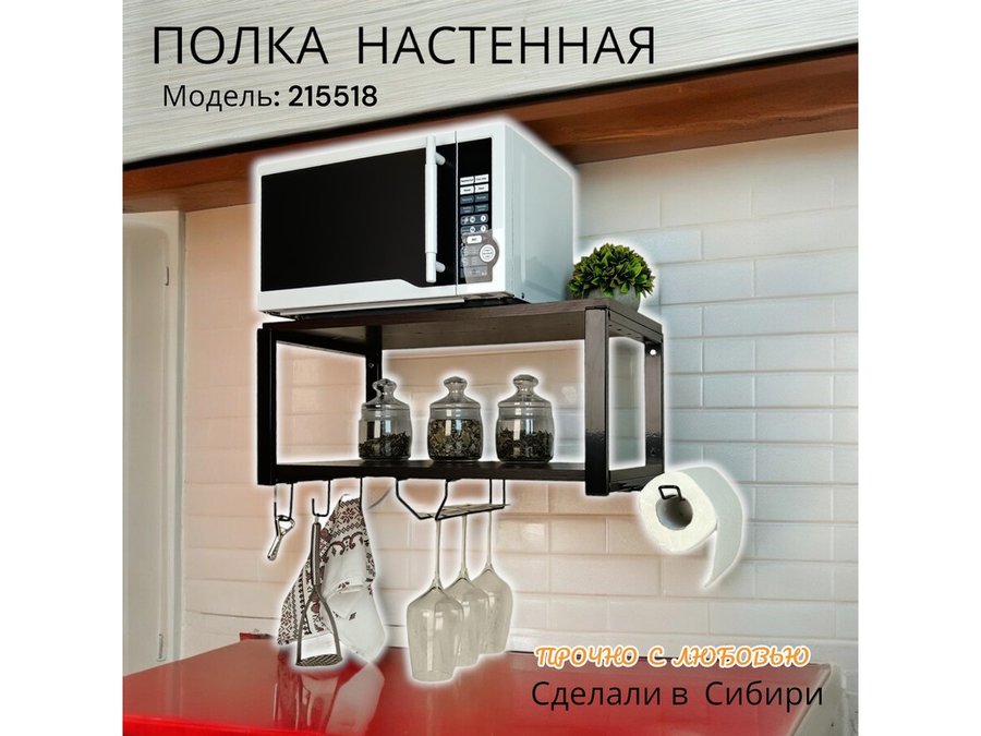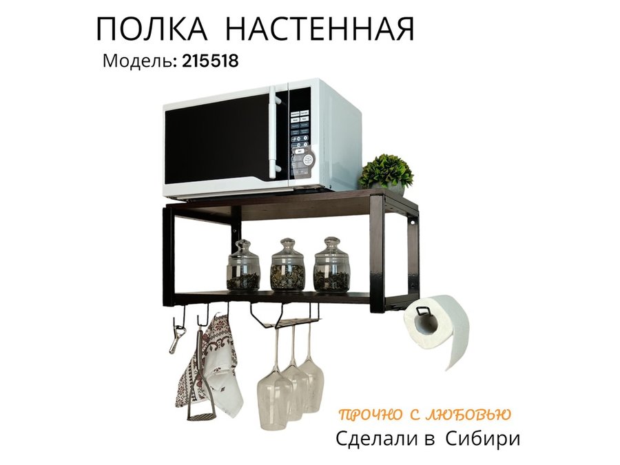 В корзину Купить в 1 клик Полка для микроволновки c бокало и полотенцедержат, крючками"ПолкаКрепка-215518"60х30см,черная,венге