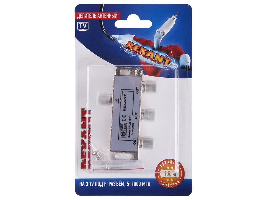 В корзину Купить в 1 клик Делитель антенный F-типа на 3 TV, 5-1000 МГц REXANT