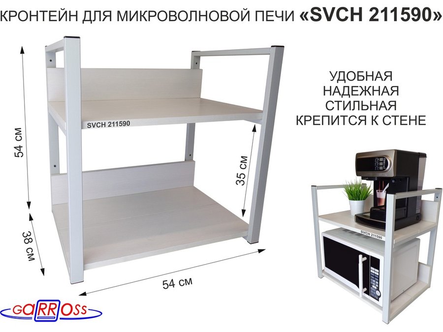 В корзину Купить в 1 клик Кронштейн для микроволновки, 54см серебристый "SVCH 211681" две полки 35х54см со стенками, сосна
