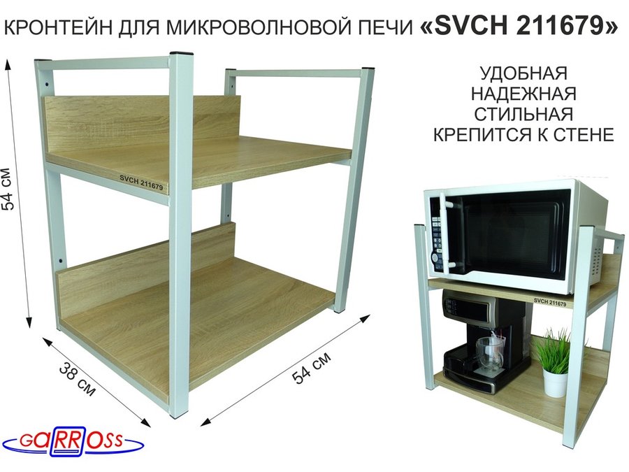 В корзину Купить в 1 клик Кронштейн для микроволновки, 54см серебристый "SVCH 211680" две полки 35х54см со стенками, дуб