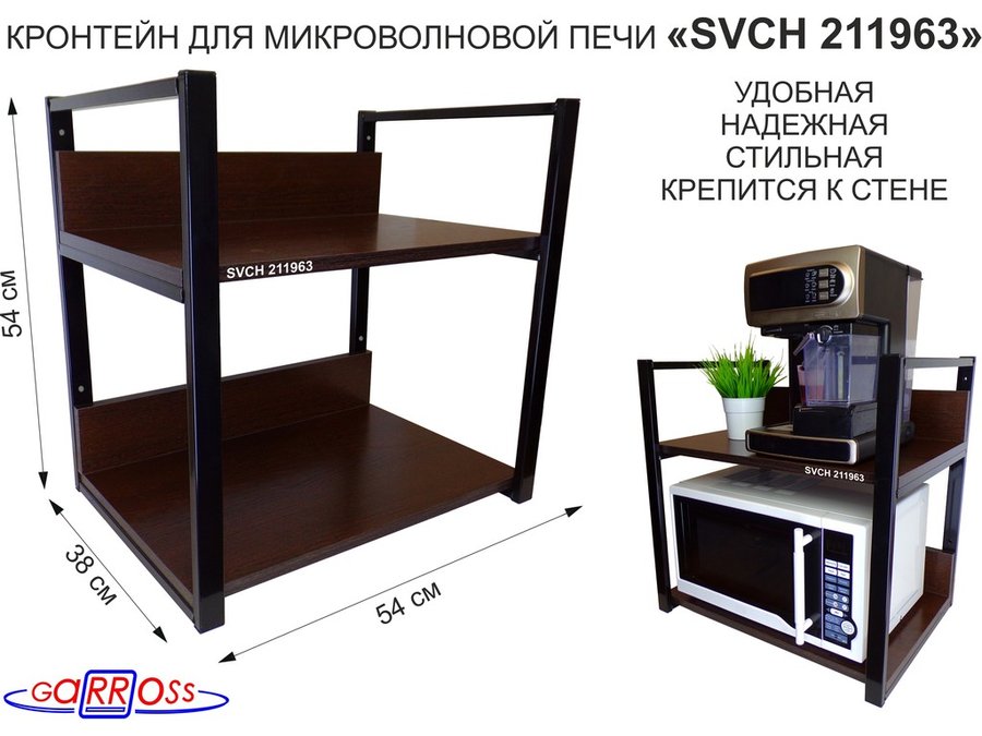В корзину Купить в 1 клик Кронштейн для микроволновки, 54см серый "SVCH 211962" две полки 35х54см со стенками, венге