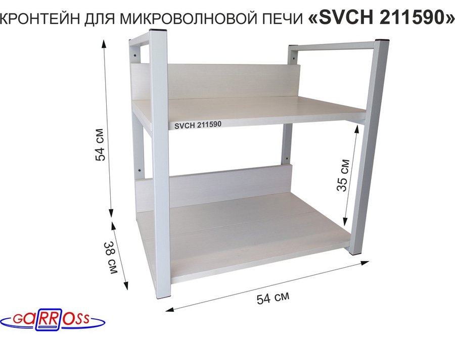 Кронштейн для микроволновки, 54см серый "SVCH 211590" две полки 35х54см со стенками,сосна выбеленная