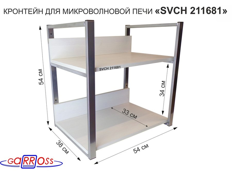 Кронштейн для микроволновки, 54см серебристый "SVCH 211681" две полки 35х54см со стенками, сосна