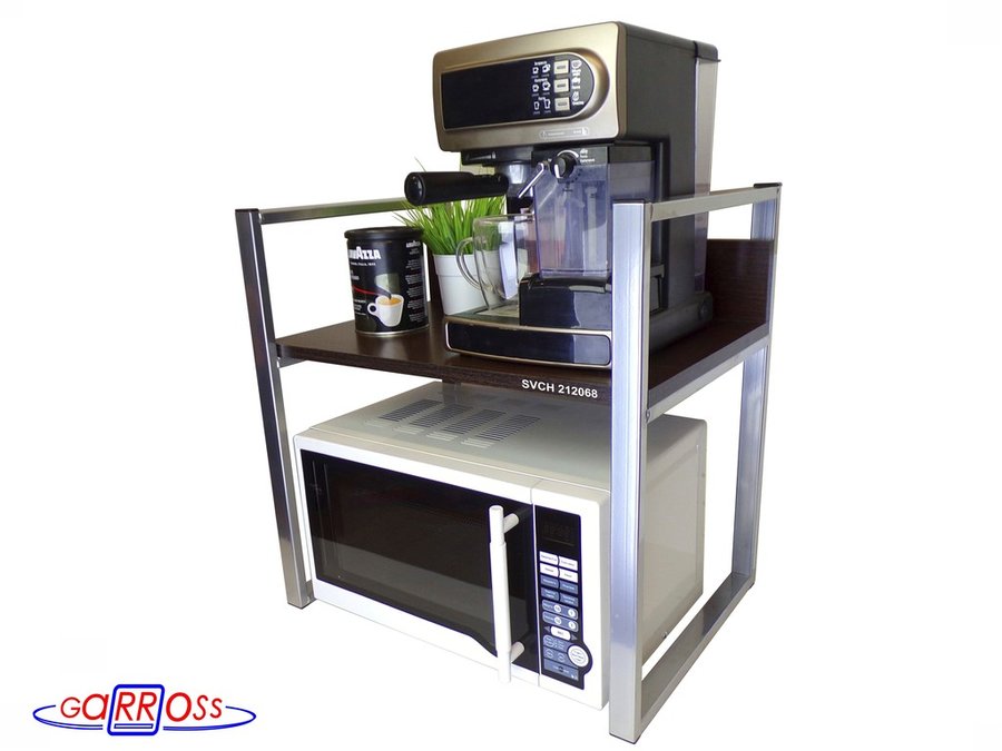 Универсальная подставка для бытовой техники (микроволновой печи, кофемашины, тостера, электрического чайника и др) позволяет эффективно использовать место на столе.