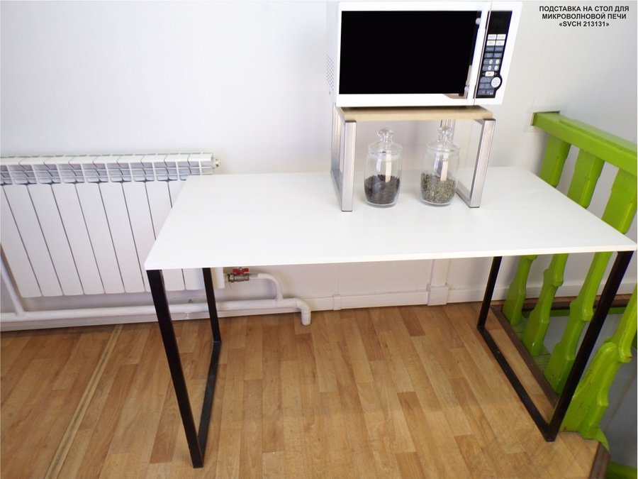 Универсальная подставка для микроволновой печи позволяет эффективно использовать место на столе.