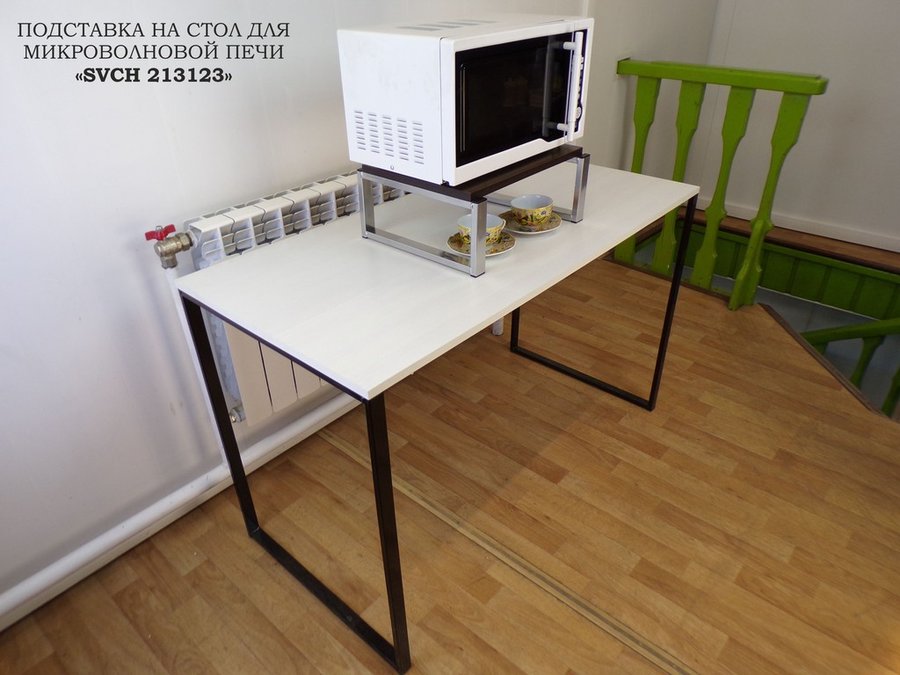 Универсальная подставка для микроволновой печи позволяет эффективно использовать место на столе.