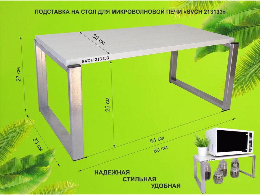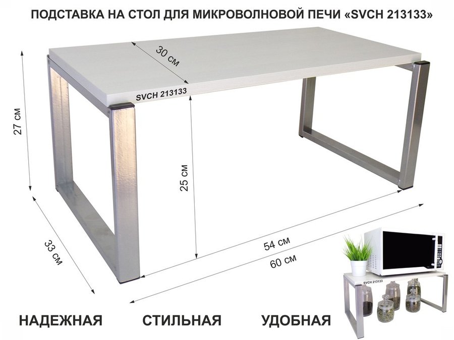 В корзину Купить в 1 клик Подставка на стол для микроволновой печи, высота 27см, серебр "SVCH 213133" полка 60х30см, сосна