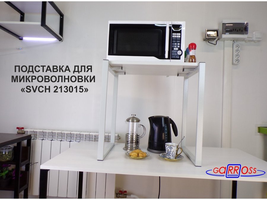 - Универсальная подставка для бытовой техники (микровоновой печи, кофемашины, тостера, электрического чайника и др) позволяет эффективно использовать место на столе.