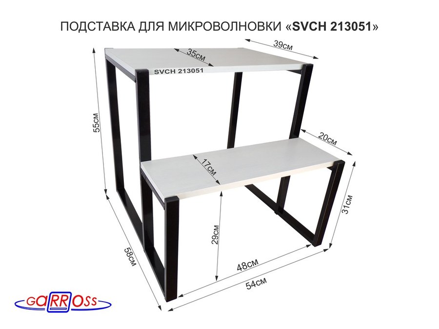 Подставка для микроволновки, черный, 55см "SVCH 213051" с двумя уровнями 55 и 31 см,сосна выбеленная