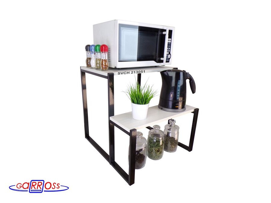 - Универсальная подставка для бытовой техники (микровоновой печи, кофемашины, тостера, электрического чайника и др) позволяет эффективно использовать место на столе.