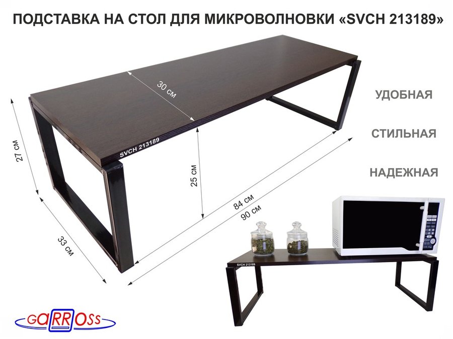 В корзину Купить в 1 клик Подставка на стол для микроволновой печи, высота 27см, черный "SVCH 213189" полка 90х30см, венге