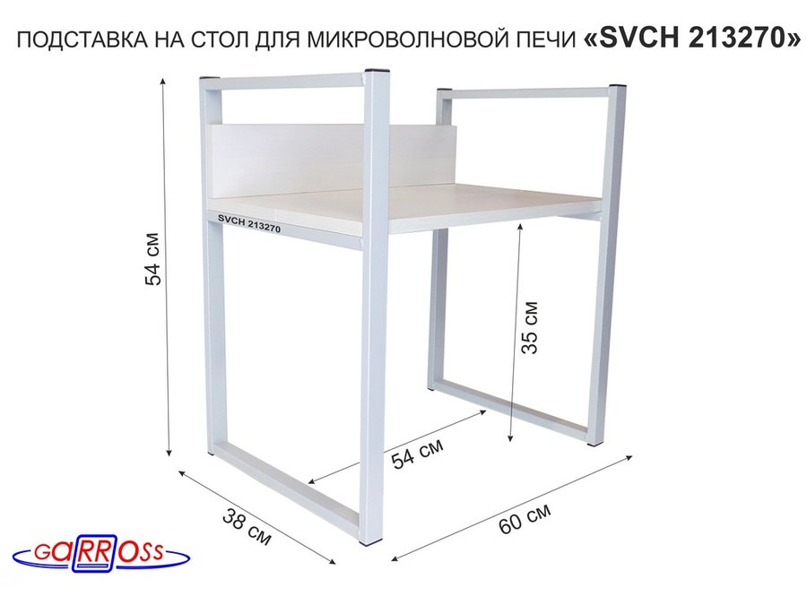 Подставка, полка на стол для микроволновой печи, высота 54см серый "SVCH 213270" полка 35х60см,сосна