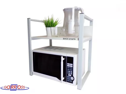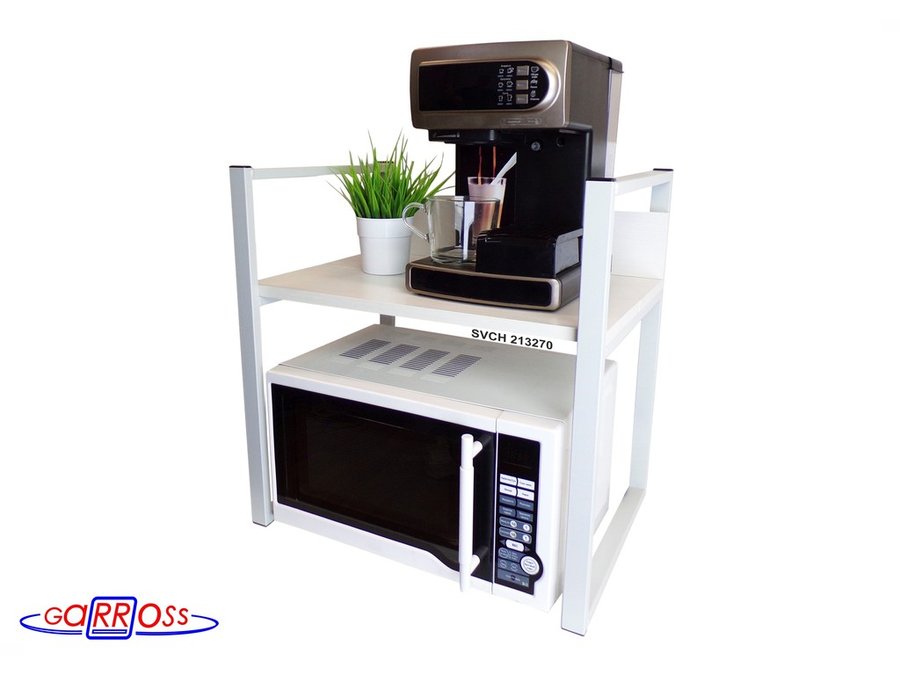 Универсальная подставка для бытовой техники (микроволновой печи, кофемашины, тостера, электрического чайника и др) позволяет эффективно использовать место на столе.