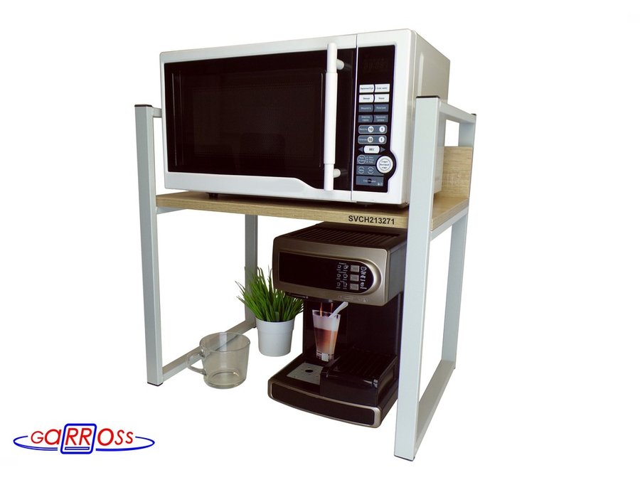 • Универсальная подставка для бытовой техники (микроволновой печи, кофемашины, тостера, электрического чайника и др) позволяет эффективно использовать место на столе.