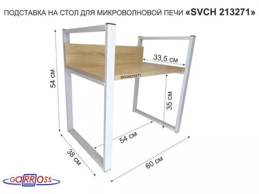В корзину Купить в 1 клик Подставка, полка на стол для микроволновой печи, высота 54см серый "SVCH 213271" полка 35х60см, дуб